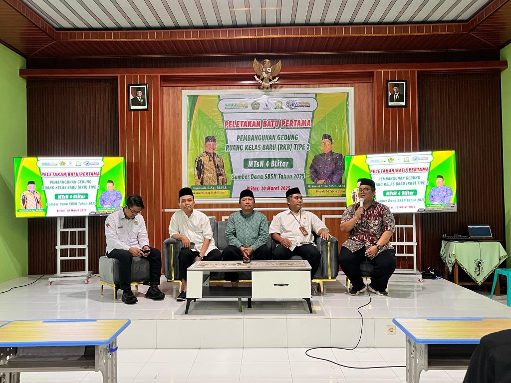 Senin, 10 Maret 2025 MTsN 4 Blitar hadir dalam kegiatan ramadan yakni Khotmil Quran dan peletakan batu pertama pembangunan gedung baru MTsN 4 Blitar. Pagi setelah pelaksanaan tadarus pagi dan sholat dhuha seluruh siswa dan bapak/ ibu guru karyawan MTsN 4 Blitar melaksanakan rangkaian khotmil quran dan tahlil serta sholawat nariyah untuk proyek pembangunan gedung baru yang didanai SBSN (Surat Berharga Syariah Negara) Kementerian Agama yang berfokus dalam peningkatan kualitas sarana prasarana pendidikan madrasah di Indonesia.