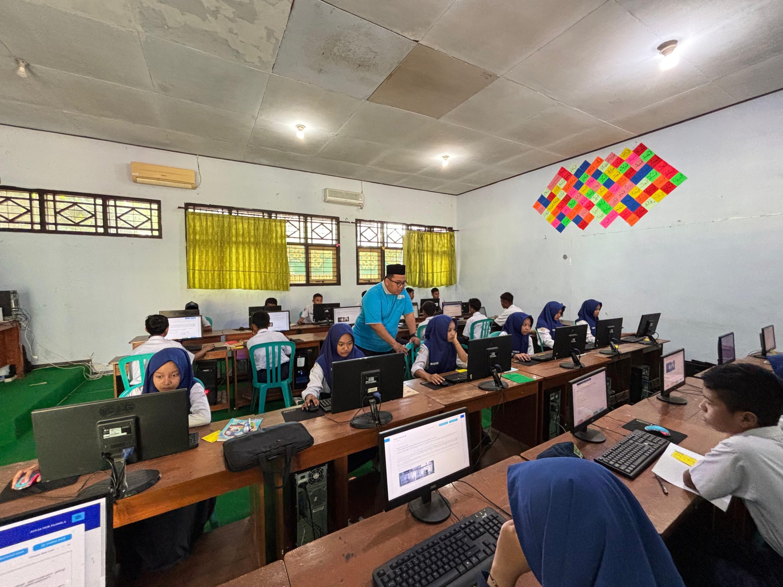 Di hadapan layar monitor yang menyala, wajah-wajah para siswa menunjukkan perpaduan antara ketegangan dan tekad yang kuat. Setelah melalui berbagai tahap pembekalan dan uji coba, kini mereka mengerahkan seluruh kemampuan terbaiknya. Dengan jari-jemari yang mantap, mereka menavigasi setiap butir soal, mulai dari tantangan analisis mendalam pada soal Literasi Membaca, pemecahan masalah logis pada soal Numerasi, hingga memberikan jawaban jujur dan reflektif saat mengisi Survei Karakter dan Survei Lingkungan Belajar. Hanya terdengar ketukan jemari pada papan ketik dan klik tetikus yang sesekali memecah kesunyian, menandakan keseriusan maksimal dari setiap peserta.
