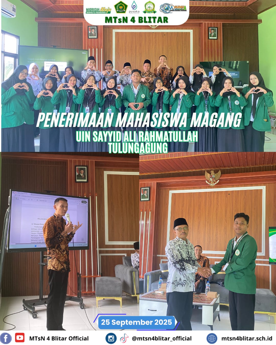 “Kami berharap para mahasiswa magang mampu beradaptasi dengan cepat, belajar dengan sungguh-sungguh, serta menularkan semangat baru bagi siswa maupun guru di MTsN 4 Blitar. Semoga pengalaman yang diperoleh dapat menjadi bekal berharga bagi masa depan mereka,” ujarnya.