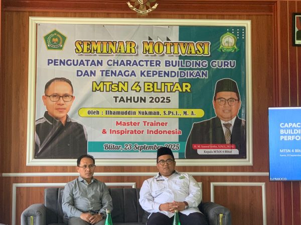 Blitar — Madrasah Tsanawiyah Negeri (MTsN) 4 Blitar mengadakan Seminar Motivasi yang berfokus pada Penguatan Character Building Guru dan Tenaga..